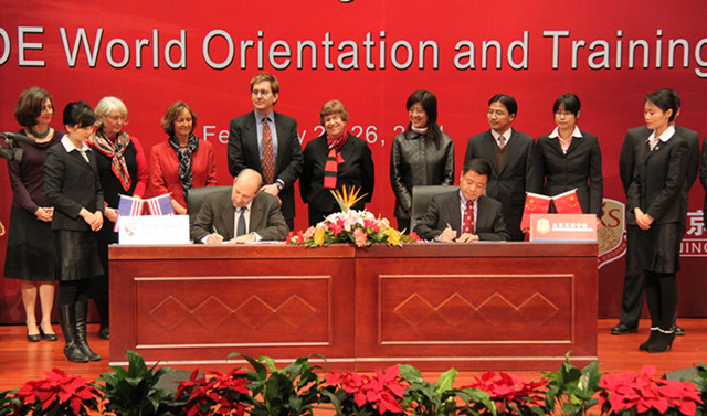 ▲2011年,我校与美国哈佛大学教育学院签署全面战略合作协议。